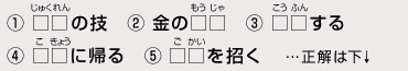 正解 (1)熟練 (2)亡者 (3)興奮 (4)故郷 (5)誤解