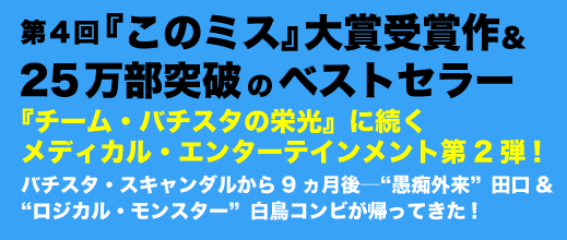 東城大学医学部付属病院・小児科病棟に勤務する浜田小夜。担当は、眼球に発生する癌―網膜芽腫(レティノブラストーマ)の子供たち。眼球を摘出されてしまう彼らの運命に心を痛めた小夜は、子供たちのメンタルサポートを不定愁訴外来・田口公平に依頼する。 その渦中に、患児の父親が殺され、警察庁から派遣された加納警視正は院内捜査を開始する。小児科病棟や救急センターのスタッフ、大量吐血で緊急入院した伝説の歌姫、そこに厚生労働省の変人・白鳥圭輔も加わり、事件は思いもかけない展開を見せていく……。 |