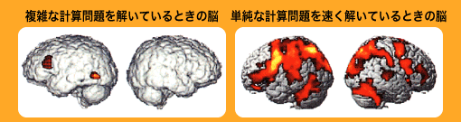 答えがすぐにわかるかんたんな問題を スラスラ解くほうが、脳の多くの部分 が活性化します。 |