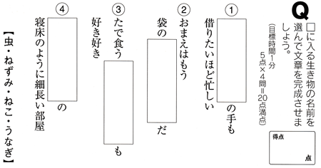 ※正解は、(1)ねこ (2)ねずみ (3)虫 (4)うなぎ
