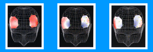 赤色の部分が少なく、意外なほどに、脳の前頭前野が活性化していません。 |