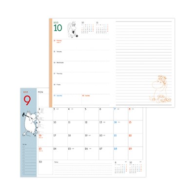 北欧の大人気キャラクター「ムーミン」の2014年版のダイアリーです。2013年9月~2015年1月のマンスリーページに、2013年10月~2014年12月のウィークリーページと、たっぷり書き込みたい方にぴったり。その他ムーミン情報、路線図など盛りだくさん。カバーデザインは人気ブランド「マーブルシュッド」とのコラボレート。ムーミンたちのイラストがとってもキュートなデザインです。