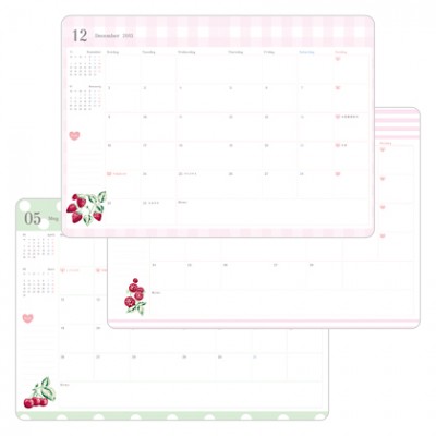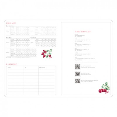 大人気ブランドMILKより、フルーツ柄がキュートな2014年の手帳が登場! ピンク&ミントグリーンを基調とし、月ごとにデザインの異なるマンスリーや、メモ欄がいっぱいで日記帳としても使えそうなウィークリーなど、充実したスケジュールページが特徴です。巻末には地下鉄路線図、ショップリスト、パスワードリスト等を収録。ブランドロゴがかわいいペンホルダーと、ポケット付きで、便利さにもこだわりました。