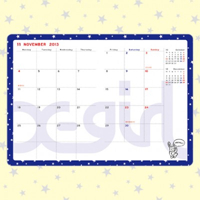 ストリートで絶大な支持を誇る人気ブランドX-girlから、2014年のダイアリーが登場です。ブランドロゴとボーダーでデザインしたカバーがとにかくおしゃれ! 2013年10月~2015年1月まで対応しています。かわいいうさぎをあしらった見開き1カ月のマンスリーと、右ページがノートになった見開き1週間のウィークリーを収録しているので、たっぷり書き込めます。ロゴを薄く敷いたデザインのノートや、X-girlのショップリスト、全国主要都市の地下鉄路線図を収録。カバーの袖に付いたペンホルダーと大きめのポケットも便利です!