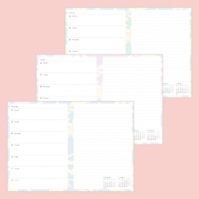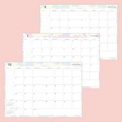 大人の女心をくすぐるファッションアイテムが人気のブランド、「snidel」から2014年手帳が登場! ピンクベージュにフラワー柄をデザインしたカバーは、snidelらしいやさしくフェミニンな雰囲気。見開き1カ月のマンスリーと、見開き1週間のウィークリーを収録した2013年10月~2015年1月までのダイアリーは、月ごとに色を変えたフラワー柄があしらわれています。ボーダータイプのノートや世界地図、全国の主要都市の鉄道路線図、買い物に役立つsnidelのショップリストも収録。カバーの袖についたペンホルダーと大きめのポケットも便利です!
