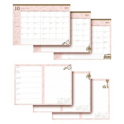 「ラグジュアリー」と「ノスタルジック」をテーマに、パーティーからカジュアルまで様々なシーンのフェミニンカジュアルを提案する人気ブランド「axes femme」の2014年手帳! 見開き1カ月のマンスリーと、見開き1週間のウィークリーを収録した2013年10月~2015年1月まで対応のダイアリーは、月ごとにモチーフを変えているので毎月新鮮な気分でスタートできます。罫線タイプのノートや全国の主要都市の鉄道路線図、お買い物に便利なaxes femmeのショップリストに加え、切り離して使えるメモやステッカーも収録。カバーの袖についたペンホルダーと大きめのポケットも便利です!
