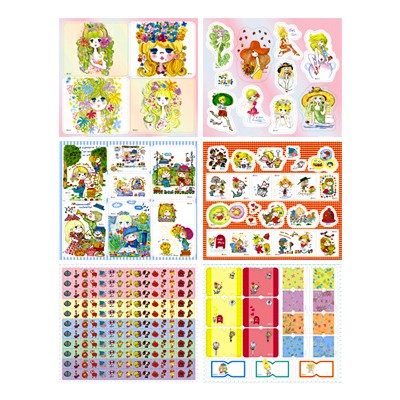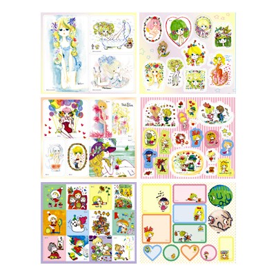 亜土ちゃんのかわいいシールが385枚!個性的で妖しく美しい大人の女性と、キュートでポップなかわいい少女。水森亜土の2つの世界観を表現する大小様々なシールが、20ページ分のシートにぎっしりと詰まっています。スケジュール用、インデックス用、メッセージ用など、実用シールもいっぱい。ノート、手帳、スマートフォン……etc. あなたの身の回りのものを亜土ちゃんのシールでカスタマイズしてください!