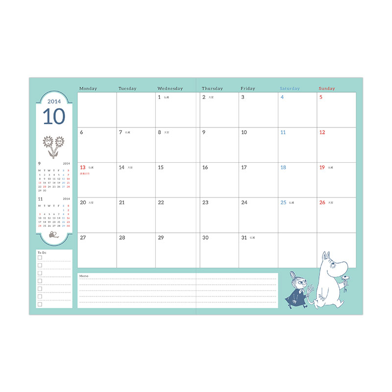 毎年人気の、フィンランドのキャラクター「ムーミン」の2015年版のダイアリーが今年も登場!2014年10月~2016年3月のマンスリーページに、好きに使えるノートページ、巻末にはムーミンショップ情報、全国主要都市の鉄道路線図など盛りだくさん。ムーミンとリトルミイが表紙のカバーは、落ち着いた色みがとっても大人かわいいデザインです。リトルミイのイラストつきのキュートなペンホルダーも内蔵された使いやすい手帳です。