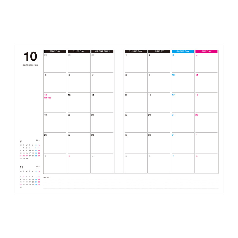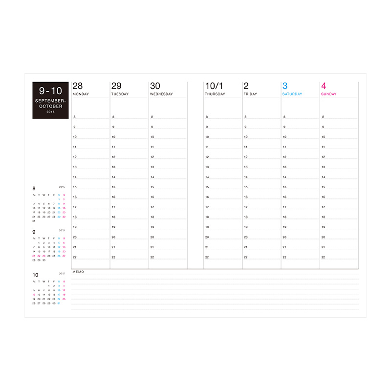 人気ブランド「ミュベール ワーク」の2016年ダイアリーが初登場!ヒョウ柄にブランドロゴを配した、スタイリッシュなカバーデザインです。2015年10月から2017年1月までのマンスリーページ、2015年10月から2016年12月までのウィークリーページ、自由に使えるノートページ、東京・大阪近郊路線図、主要地下鉄路線図などで構成。ウィークリーページは、一日のスケジュールを時間軸ベースで書き込める、バーチカルタイプを採用。メモスペースもたくさんあって、使い勝手がよいのが特徴です。