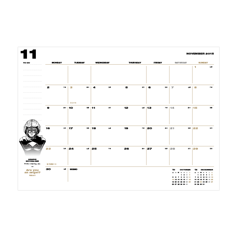 スター・ウォーズファン必携のマンスリー手帳が登場。カバーは、フロントにダース・ベイダーをアップでプリントし、バックにはデス・スターを箔押しした豪華デザイン!また、月毎にスター・ウォーズの人気キャラクター&名言を掲載。さらに、たっぷり書き込めるノートページでは、エピソード1~6の名場面&ストーリー紹介も。2015年12月に公開される最新作「フォースの覚醒」に向けての復習にぴったり!2015年11月から2017年3月まで使用可能。