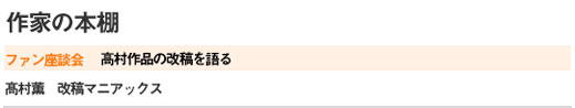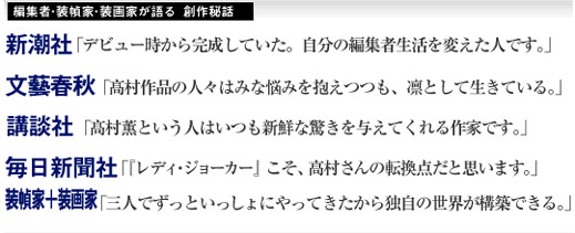 - 文庫化して、2006年02月20日に宝島社文庫『髙村薫の本』を発売しました。