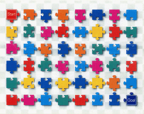 スタートからはじめて、凹凸が合うピースを結んでゴールをめざ してください。