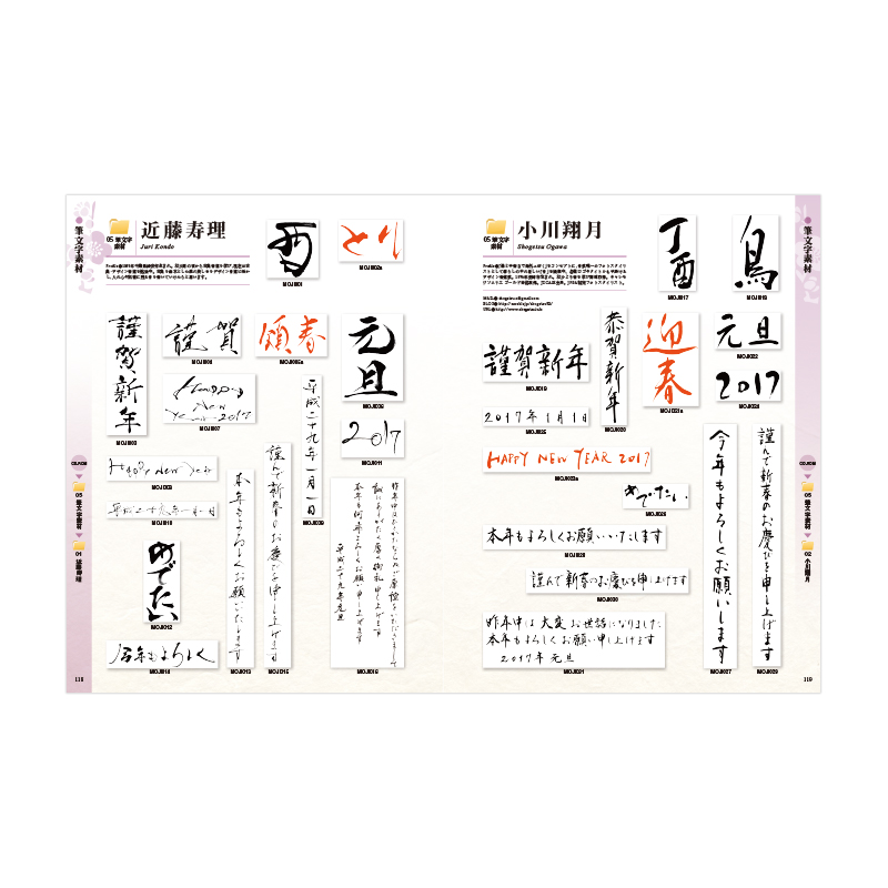 今話題の『伊藤若冲』素材を収録!もちろん「書」「水彩」「紙彫刻」「切り絵」「版画」など、人気書家や和素材のイラスト作家が、今年も最上級の品格ある個性豊かな完成年賀状を描きおろし!本誌限定特典も24点!他誌にマネできないフォント8書体を継続収録!223ページすべてが大きな文字で読みやすく、作り方も懇切丁寧に解説しました。