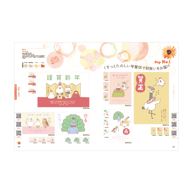 そのまま印刷するだけですぐに出せる人気クリエーター30人の年賀状1000枚に加え、