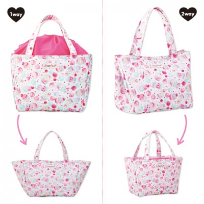大人気の子ども服ブランド『mezzo piano』から、25周年を記念した待望のスペシャルブックが4冊同時に登場!こちらの付録は、どうしても荷物が多くなってしまうママに嬉しい、マチもたっぷりビッグサイズのトートバッグ。上部に巾着がついているので、中身が見えず安心。サイドのスナップボタンを留めるとたちまちキッズのお稽古バッグにも使えるスクエア型のトートに早変わり!パステルカラーでキュートなのに大人っぽくも持てるメゾ ピアノならではのスウィーツプリントもステキです。2013年の秋冬ファッションアイテムからヒストリーまで誌面内容も豪華!