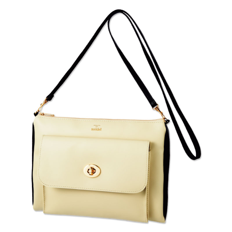 モデルやタレントのファンが多いことでも有名なスナイデルの付録付きブランドムックです。今号の付録は、ゴールドのロゴと金具がアクセントのレザー調ショルダーバッグ。素材は合皮ですが、本物のレザーかとみまがうような高級な仕上がりになりました! 前面に大きなマチ付きポケットもあって大変使いやすいデザインです。持ち手を外して、クラッチとしても使うのもおすすめ。本誌は、いつにも増して豪華なモデルが登場しています!2014年秋冬のトレンドはまずこの本をチェックして。