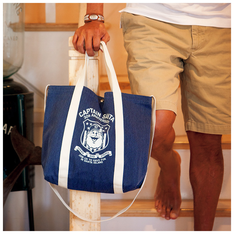アイビールックで一世を風靡した「BOAT HOUSE」の兄弟ブランド「CAPTAIN SANTA」のブランドムック待望の第2弾!今回の付録は、大好評だった第1弾を大幅に上回る豪華仕様のビッグトート。強度のあるリサイクルデニムに白のダブルハンドルがつき、手持ちはもちろん肩掛けもできる2WAYタイプです。フロントには、もちろん大きなサンタのプリントが! スナップボタンつきだから、中身が見えないのもポイント。男性から女性まで、着こなしを問わず持ちやすいデザインとなっています。誌面では、「CAPTAIN SANTA」の新作カタログから愛用タレントからのメッセージ、特別対談まで、前号同様ボリューム一杯でお届けします。