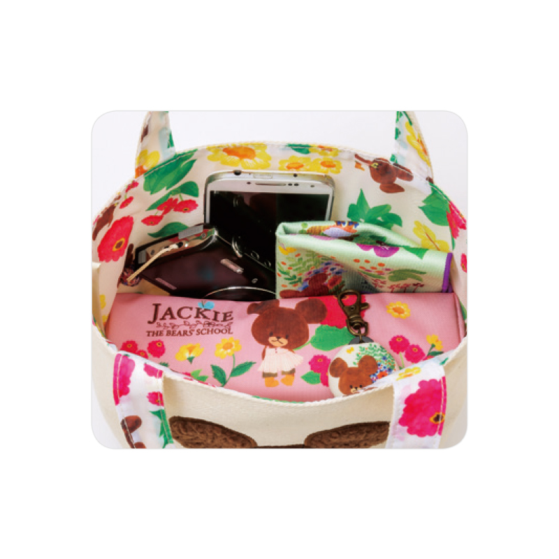 大人気“くまのがっこう”のムックが登場!2016年春からスタートする新しいアートシリーズ「リトル・スマイル・ジャッキー」の誕生を記念したスペシャルなムックです。作家・あだち なみさんによる完全描き下ろし&デザインのカラフルなお花に囲まれたジャッキーは必見!付録はもちろん、新シリーズ「リトル・スマイル・ジャッキー」から。もこもこフェイスがキュートなバッグは、ほんのり微笑んだ愛らしいジャッキーの表情がたまりません!内側にはカラフルな花柄を使用し、 細部にまでこだわったオリジナルバッグに仕上げました。誌面には豊田エリーさんが登場!最新グッズカタログ、ジャッキーの仲間たちの紹介、作家・あいはらひろゆきさんのコメント付きでお届けする絵本シリーズの紹介など、“くまのがっこう”の魅力がギュッと詰まった一冊です。