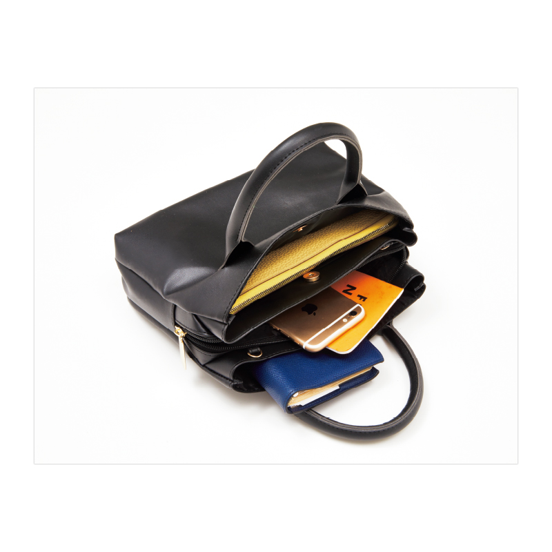 本革調3ポケットトートバッグ