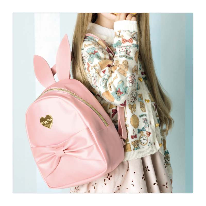 大人気キッズブランド「メゾ ピアノ」からムックが登場!特別付録は、うさ耳がとってもキュートなリュック。ゴールドのハートのプレート、フロントの大きなリボンもポイント♪レザー調のパールピンクのボディに、うさ耳がついた大人可愛いデザインに仕上がりました。アジャスターつきだから、ヒモの長さも調節可能で、長く使えます。毎日のお出かけにはもちろん、おめかしの日にもピッタリのスペシャルなリュックです。