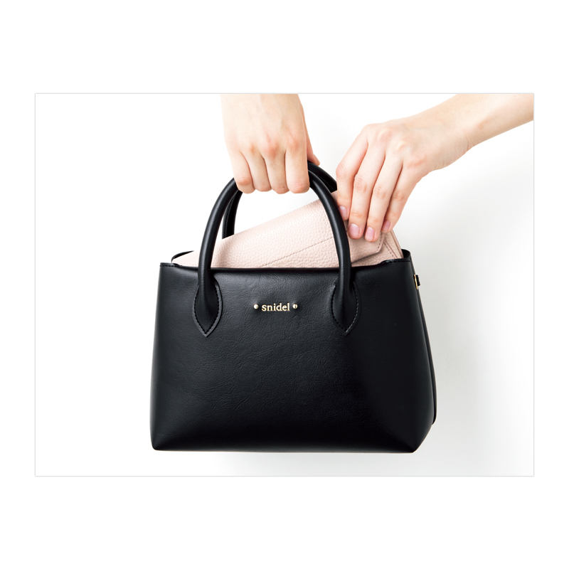 付録は、ゴールドのロゴ&スタッズがアクセントのレザー調2WAYショルダーバッグです。リアルレザーの風合いで、付録とは思えない仕上がり。マチもたっぷりなので、長財布はもちろんタブレットも入って、タウンユースにはこれで十分な大容量。秋のコーディネートのアクセントにおすすめです。豪華なモデルが勢ぞろいで、表紙には佐々木希が登場!2017年の秋冬の着こなしはスナイデルをまずチェック!