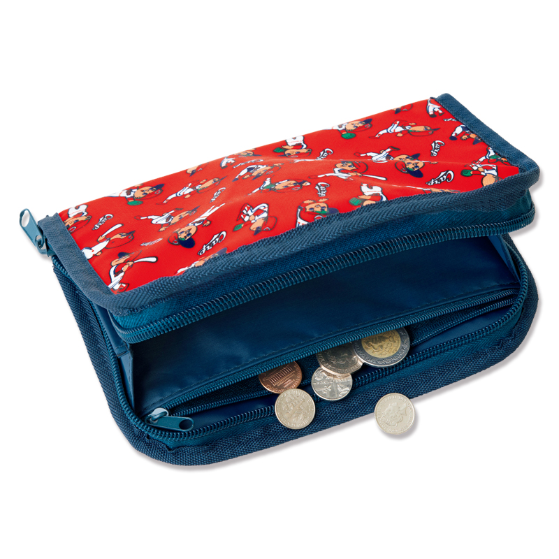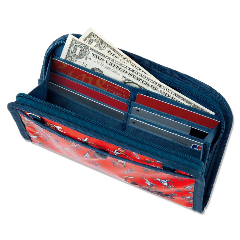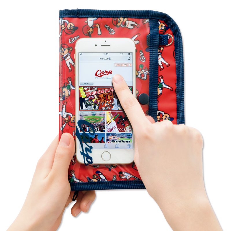 マルチケースは取り外し可能なショルダーストラップ付きで、中は紙幣入れ1ポケット、カード入れ6ポケット、チャック式小銭入れの充実仕様。さらに裏面にはチケットやスマホが収納できるビニールポケットが付いて、荷物の多い球場内で大活躍すること間違いなし!