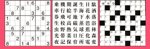 | 脳力トレーニングの第一人者、東北大学加齢医学研究所の川島隆太教授は、パズルについてこう話す。「パズルを解くと脳が活性化することはわかっています。とくに、数字を扱うもの、漢字や文字を扱うものが、脳の前頭前野を活性化させるのにたいへん有効です」。パズルで脳を鍛えるには、毎日すこしずつ、長く続けるのがおすすめのようだ! |