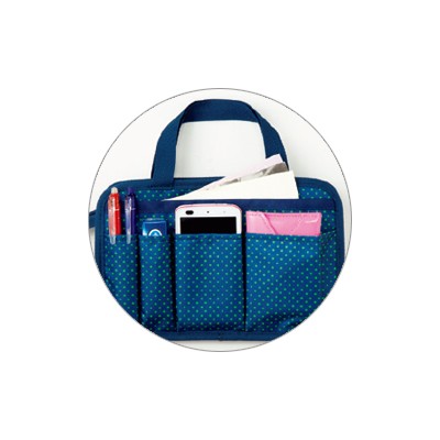 さらに特別付録は、便利すぎて毎日使いたくなっちゃうバッグ in バッグ!合計10個のポケットとたっぷり10cmのマチで、携帯、長財布、コスメポーチ、ステーショナリーなど、生活の必需品をコンパクトに収納できます。バッグはお好みに合わせて選んでいただけるよう、柄を3種類ご用意しました。本誌の付録style3はクラシックなレスポを彷彿とさせるドット「レイク ピン ドット」柄。