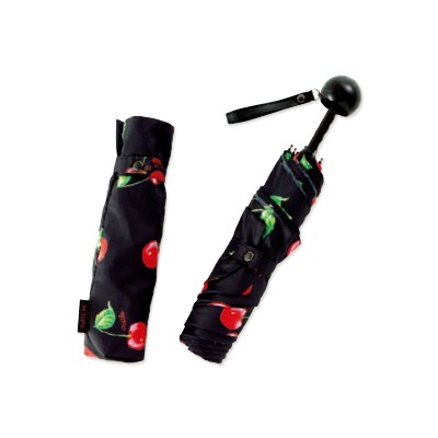 ガーリィなデザインにちょっぴりスパイスを効かせたテイストで人気のブランド「MILK(ミルク)」から、晴雨兼用の折りたたみ傘が登場です。MILKお得意のチェリー柄がとってもキュート!さりげなく入ったMILKのロゴもおしゃれな総柄仕上げで、突然の雨が楽しくなること間違いなし。 また、UVカット率89%なので日傘としても使えます♪さらに、超軽量な175gなので、持ち運びにも便利。パッケージの中には、MILKの2013年夏の新作カタログも入っているので、そちらもぜひチェックして。