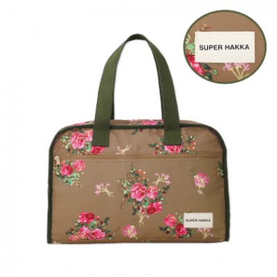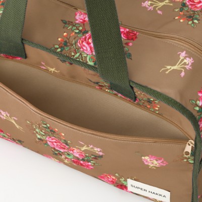大人気ブランド、スーパーハッカのビッグサイズのボストンバッグとミニカタログのセットです。ボストンバッグはスーパーハッカの歴代の柄の中でも、特に人気が高かったローズ柄。落ち着いたカーキ色の持ち手や、プリントの魅力を引き出した大人っぽい配色がポイントです。小旅行にも役立つサイズで、前面には大きなポケットが付いていて、使いやすさも抜群。ミニカタログではスーパーハッカの新作をたっぷり紹介しています。