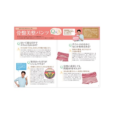 骨盤ダイエットの第一人者、福辻鋭記監修の骨盤美整パンツBOOK!寝る時にこのパンツをはくだけで、ゆるんだ骨盤がしまります。その秘密は2本の補正ベルト。寝るだけでひらいた骨盤を矯正し、正しい位置に戻してくれます。はいていても締め付け感がなく、エクササイズをしなくても骨盤が矯正されて代謝アップ!これだけでダイエットやヒップアップ効果に。肌に優しい素材で、伸縮性があり、はき心地もバツグンです。カラーは女性らしいピンク色。