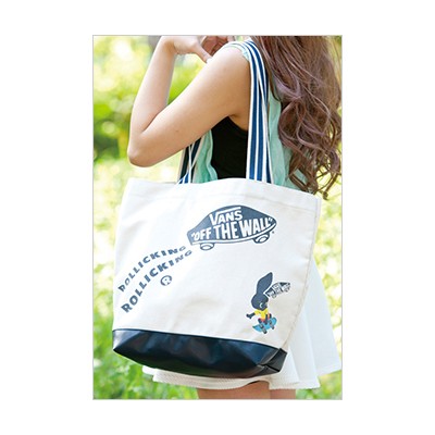 アメリカ西海岸のスケーター・カルチャーを代表するスニーカーブランド「VANS(ヴァンズ)」のトートバッグが誕生!2013年3月から開始した「ROLLICKING(ローリッキング)」とのコラボラインをフィーチャーした大型のトートには、VANSとROLLICKINGのロゴ、耳にVANSのロゴが入ったウサギが配置された完全限定版。長い歴史を持つVANSのコアなファンにも、カジュアル・ファッションを楽しみたいライトなファンにもアピール可能な、使い勝手のいいサイズです。