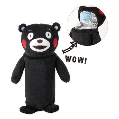 国民的人気キャラクター、くまモンのペットボトルホルダーが登場です!500mlのペットボトルが入る大きさで、ぬいぐるみのような見た目がとってもラブリー!手ざわりも気持ちいい~!保冷・保温機能があるので、冷たい(温かい)飲み物を入れて持ち運ぶのに大変便利。長さ調節のできるストラップ付きだから、親子で使用できちゃいます。アウトドアに、お散歩に、部活に、大活躍間違いなしです!