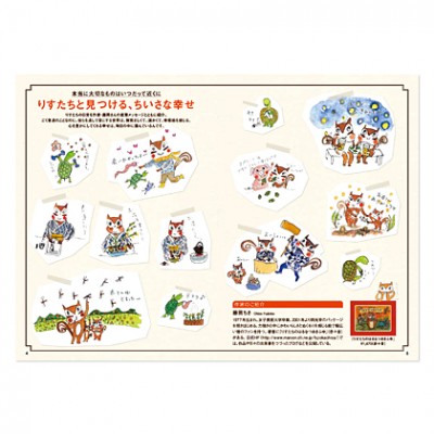 西光亭「くるみのクッキー」のパッケージでおなじみのりすたちがふせんになって登場。ふせんにデザインされたりすたちは、すべて新作の描き下ろし! メッセージを書いたり、本や雑誌のしおりにしたり……。毎日の生活を楽しくしてくれる、キュートでハッピーなふせんです! りすの仲間たちなどを紹介するミニBOOKも必見です!