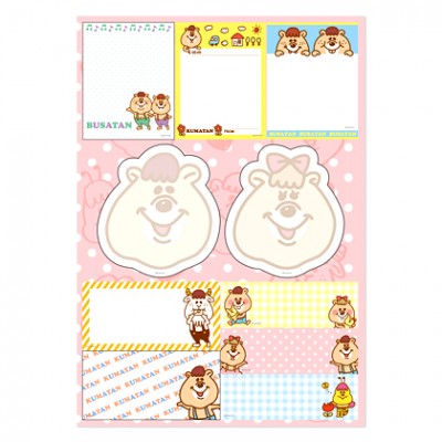 ブランド「w♥c JAPAN」の人気キャラクター、KUMATAN&KUMATANファミリーのふせん&シールがセットで登場!シールは大きめサイズと、スケジュール帳などに貼るのに便利な小さめサイズの2セットです。ふせんは10種類で計100枚入っています。