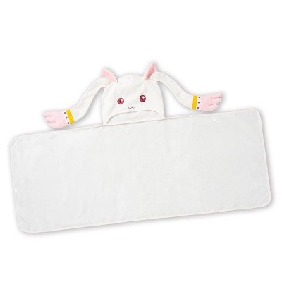 アニメ『魔法少女まどか☆マギカ』の人気キャラクター“キュゥべえ”の顔をフードにあしらった着られるフリースブランケットです。目や口の刺繍、耳の形など細部までこだわり、キュゥべえの愛らしい姿を再現しました。スナップボタンを留めれば、作業中でも着た状態をキープできます。フリース素材で保温性もバッチリです。