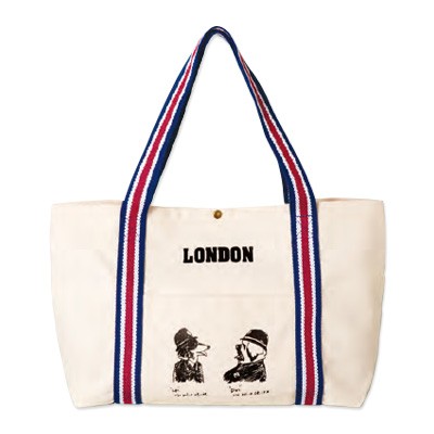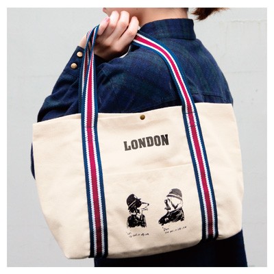 ポップなスタイルでおなじみのイーハイフンワールドギャラリーから、ロンドンカラーの持ち手が可愛いキャンバストートバッグが登場!フロントとバックでデザインが異なる、両A面仕様!TVCMでおなじみの犬のポリスマン、LONとDONがプリントされているところにもご注目を!雑誌がらくらく入るサイズで、マチもたっぷりなので、サブでもメインでも使える便利なカジュアルトート。デイリーに使ってね♪