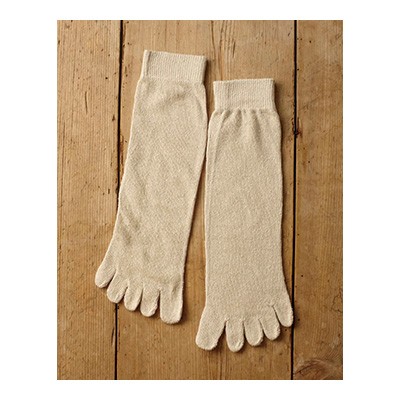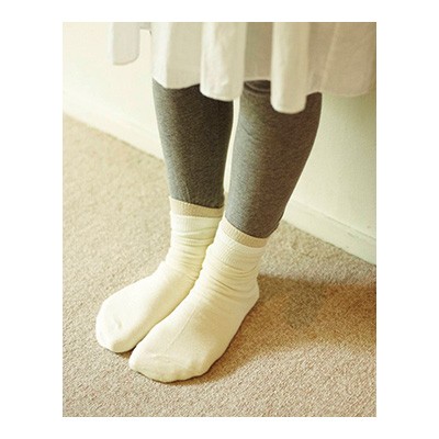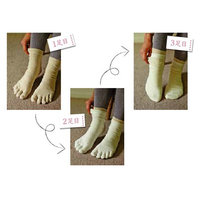 血流が滞りがちな下半身、特に末端の足は冷えを感じやすいところ。そこで、重ねばき靴下で温めて、血行をよくしてあげましょう。1足目はシルク100%の5本指靴下、2足目は綿100%の5本指靴下、3足目はウール混の先の丸い靴下を順に重ねてはきます。汗を吸い、蒸れを防ぎ、保温する特性なので清潔&あたたか。靴下のゴム口をくしゅくしゅっとさせてはいてもおしゃれでかわいい!