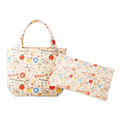 大人気のKUMATANのトートバッグとポーチのセットです。バッグとポーチはチェーンで取り外し&取り付け可能。生地はKUMATANファミリーが勢ぞろいした総柄プリントです。