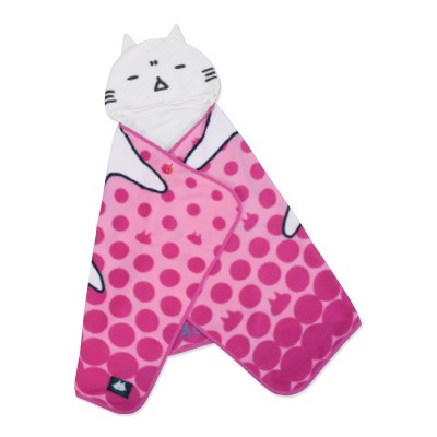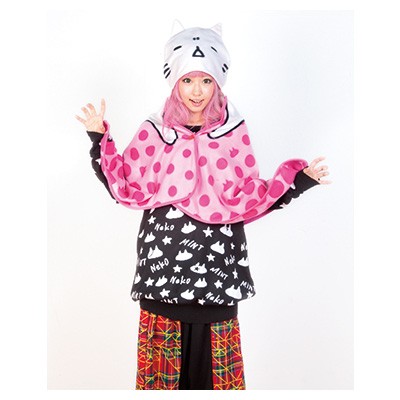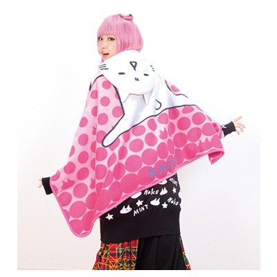 ネコの“吾輩(わがはい)”がアイコンの大人気ブランド『MINT NeKO』のあったかフリースブランケットが登場。ネコ耳付きのフードをかぶれば、吾輩に後ろから抱きしめられたようなデザイン。ボタンをとめればマントのように着ることもできるので、ご自宅での使用はもちろん、野外イベントや職場や学校で肌寒いときに羽織るのにも最適です。ピンク地のフリースデザインがやさしく包んでくれる癒しの1枚。この冬は吾輩にあたためてもらいましょう。