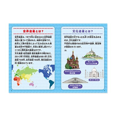 世界地図がマグネットパズルになりました。パズルで遊びながらしっかり学習、地域ごとに色分けされているので位置をスムーズに覚えられます。主な世界遺産のマグネットも42個ついてきて、知識の幅をグンと広げます。世界の国のなんでもランキング表つきで、繰り返し学習が楽しくできます。