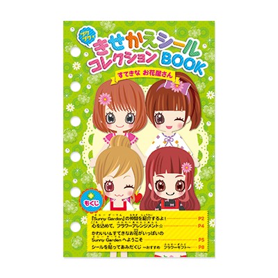 人気シリーズ「プクプクきせかえシールコレクション」第3弾の登場です。一度はあこがれる「お花屋さん」が本商品のテーマです。お店のスタッフのコスチュームやかわいらしいお洋服をきせて、お花屋さんごっこを楽しんでね。カラフルな花束、鉢植えなどの小物も充実!6穴ファイルにファイリングできるシール2枚、台紙BOOK(8ページ)入り。