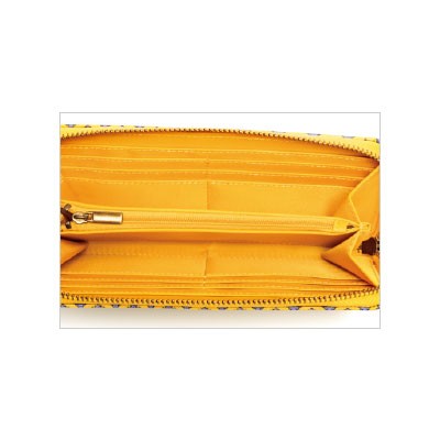 南仏プロヴァンスの自然をモチーフにした伝統あるファブリックが人気の「レゾリヴァード」より、おしゃれな長財布が登場しました。大人可愛い「Ampo」(アンポ)柄と、金運アップも期待できるイエローベースで、みんなから愛されるデザインに仕上がりました。札入れが2つ、カード入れが12ヵ所と、収納力も満点の充実仕様。ゴールドのアンティーク調ファスナーで、落ち着いた印象です。レゾリヴァードの2014年春夏アイテムを紹介した小冊子も付いてます!