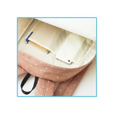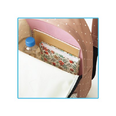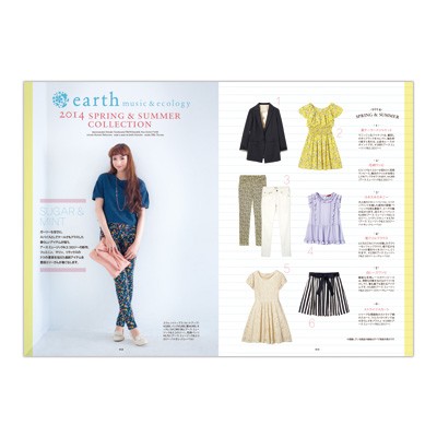 人気のアース ミュージック&エコロジーから、レースが付いた可愛いバックパックが登場。ピンクベージュの水玉柄をベースに、レースを縫いつけた女の子らしいデザイン。ダブルファスナーや前ポケット、内ポケット2つ、ブタ鼻、長さを調整できるストラップなど、高機能なところもポイント。A4もすっぽり入る大きさなので、いろいろなシーンで活躍させて。小冊子ではアースの2014年春夏アイテムを紹介しています。
