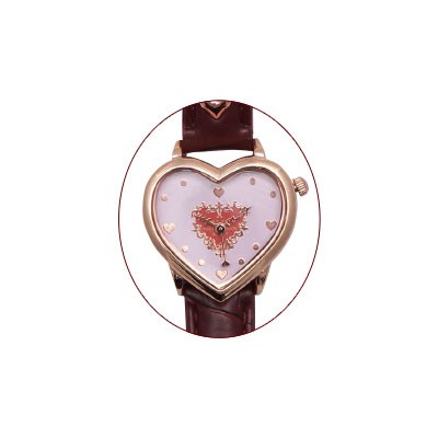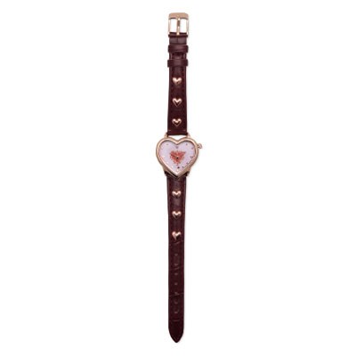 BABY, THE STARS SHINE BRIGHTのロゴ“プリンセスドロップ”をあしらったハート形の腕時計が登場です!ピンクゴールドのフェイスとベルトに打ち込まれたハートのリベットが手元を華やかに彩ります。すべてオリジナルデザインの本格仕様の腕時計は、ファンにとっては見逃せないアイテム。ブレスレット感覚でつけられるファッション性の高いデザインです。