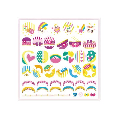 キュートでカラフルなネイルチップがかんたんにつくれる、おしゃれトイキットです。水転写のシールが入っているので、チップ制作に接着剤などは必要ありません。両手2回分のたっぷりチップと、キラキララインストーンもついています。