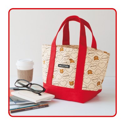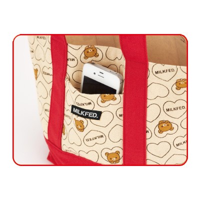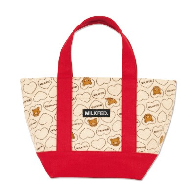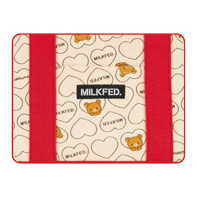 大人気キャラクター・リラックマと、多くの女の子に支持されるファッションブランド・MILKFED.。女性ファッション誌『SPRiNG』の呼びかけによって夢のコラボレーションが実現!ハートを抱きしめるリラックマの姿がたまらなくかわいいバッグが誕生しました。お弁当箱や500mlペットボトルを入れてランチバッグとして使ったりなど、ちょっとしたおでかけのお供にぴったり♪携帯電話を入れたりできる便利な外ポケット付き。ここでしか手に入らないスペシャルアイテム、ぜひ手に入れてください!