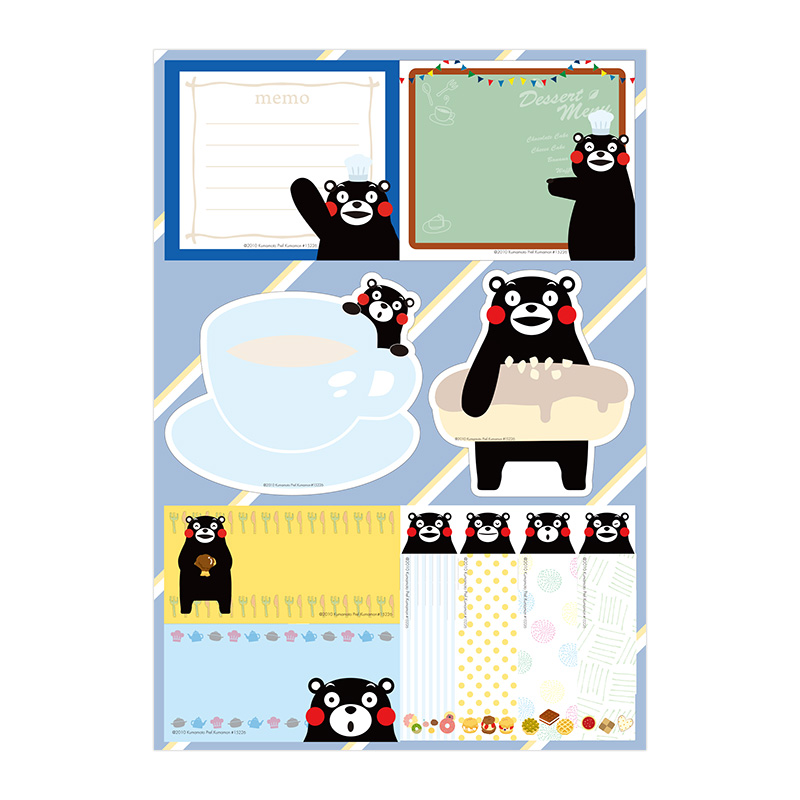 熊本県の愛されキャラクターくまモンのふせんBOOKが今年も登場!カフェ風にデザインされたくまモンのふせんが10種類・計290枚。同じテキスタイルを用いた2015年版の手帳も発売しているので、おそろいで使っても◎。くまモンがカップに入っているおちゃめなダイカットふせん、かわいいスイーツとくまモンのインデックスふせんなど、バリエーション豊富なので、メモに、スケジュール管理に、ブックマークに、幅広い用途でお使いいただけます。