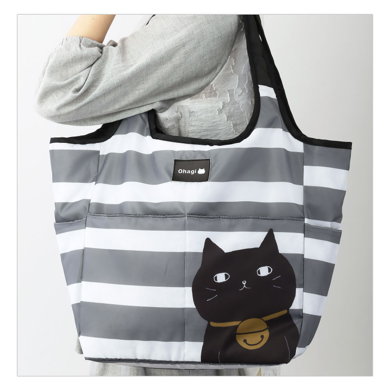 ぽっちゃり体型とうつろな瞳がなんとも哀愁を帯びてかわいい「ねこのおはぎちゃん」のふかふかショッピングBAG BOOKです。ビッグサイズ&8つのポケットつきで収納力抜群。軽い素材なのもうれしいポイント。ショッピングのお供にはもちろん、通勤・通学や一泊旅行などにも使えちゃう、なにかと出番の多いバッグです。グレー×白のボーダー柄に、おはぎちゃんのイラストが大きく入ったデザインで、ねこキャラ好きにはたまらないバッグです。