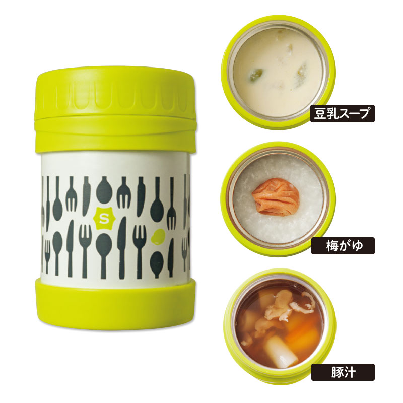 ランチにぴったりサイズ!かわいいプリントのスープジャーが登場。最大適正容量330mLの大容量なので、野菜たっぷりのスープやおかゆが作れます。ダイエット食の第一人者、村上祥子先生提案のぜんぶ150kcal以下のレシピ付き。美肌、冷えなど女性のお悩みに応じた食材を使ってダイエットにプラスの効果も。寝坊した朝でも食材とだし、熱湯を入れるだけでランチタイムにおいしく仕上がります。簡単&ヘルシー&ダイエット。女性の味方「スープジャー」で楽しくランチしてください。